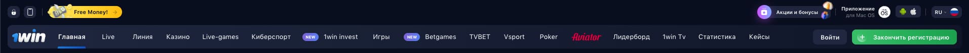 Зеркало 1вин предоставляет полный доступ ко всем основным разделам и функциям: